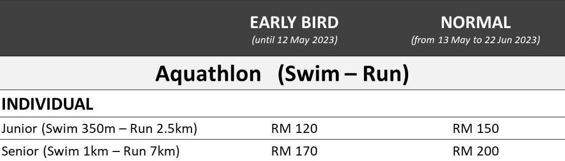 Race Distance : Swim 350m - Run 2.5km (Junior Category)